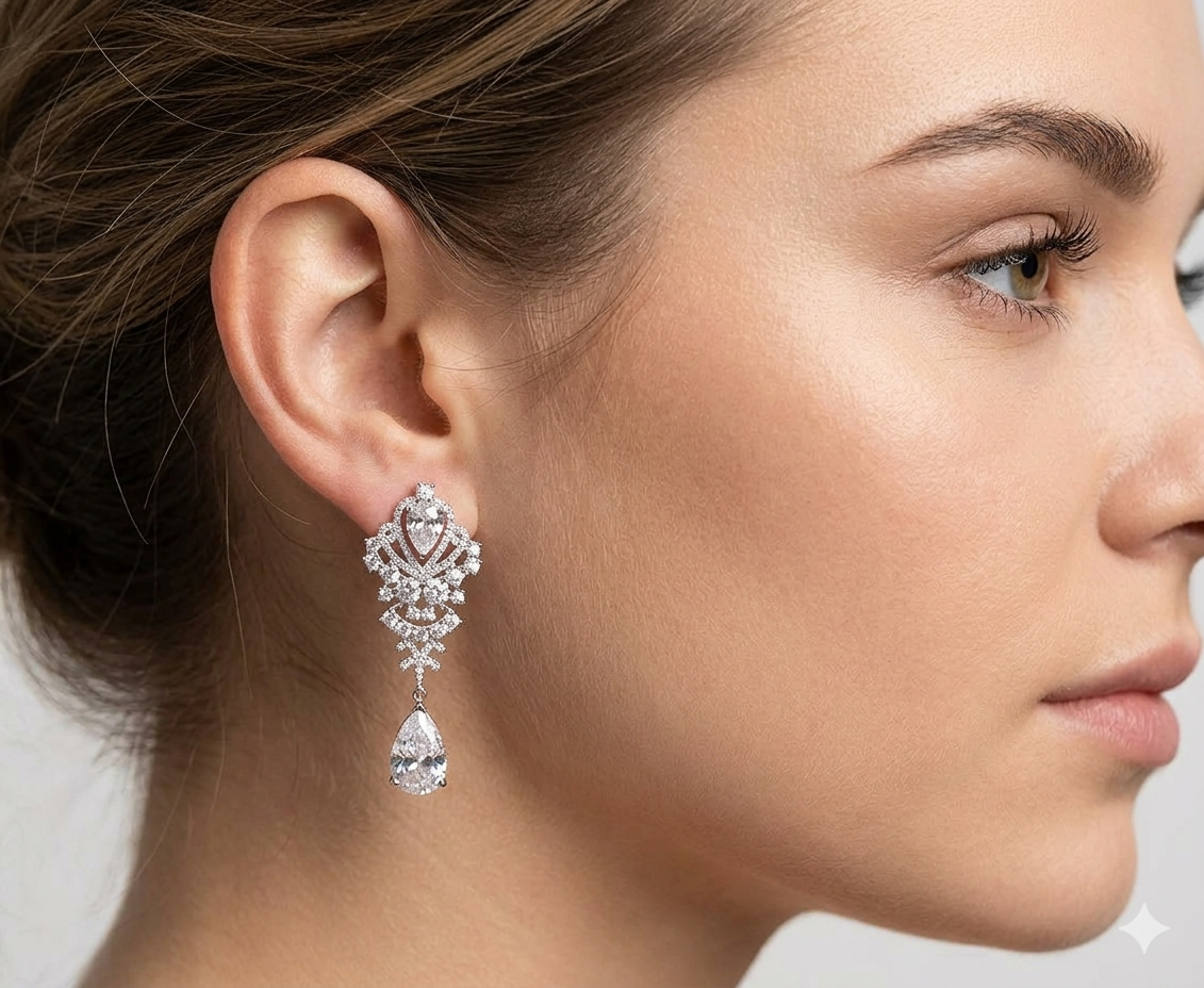 Brinco de zirconia, pedras cravejadas com tecnicas de joalheria.
